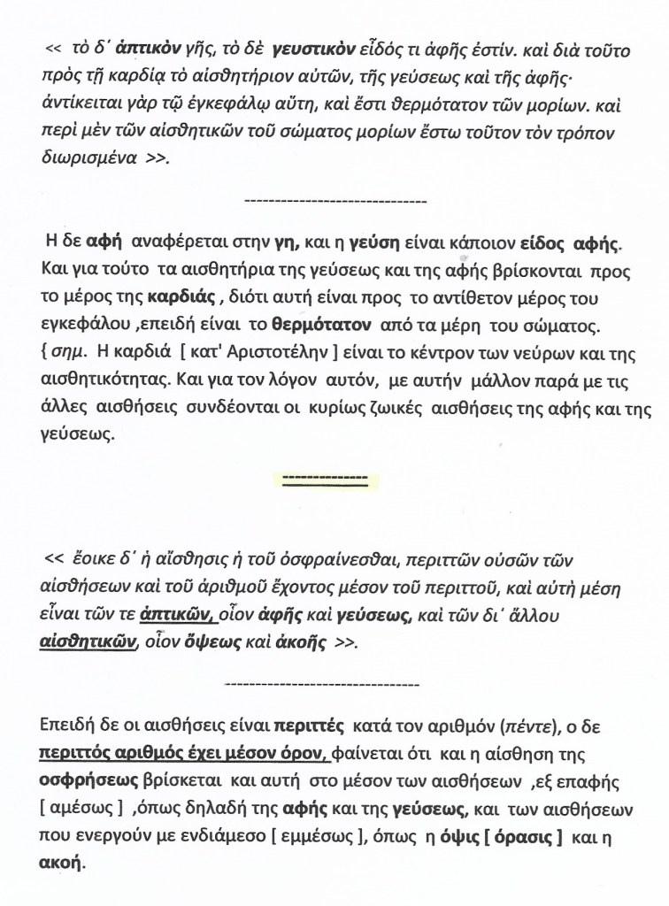 ΑΡΙΣΤΟΤΕΛΟΥΣ – » Περί Ψυχής ». { Β’} ,{ 421 a }.