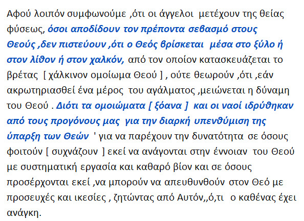 Aυτοί που αποδίδουν τον πρέποντα σεβασμό στους Θεούς πιστεύουν ,ότι ο Θεός ΔΕΝ βρίσκεται μέσα στο ξύλο ή στον λίθον ή στον χαλκόν ,από τον οποίον κατασκευάζεται το ομοίωμά τους...