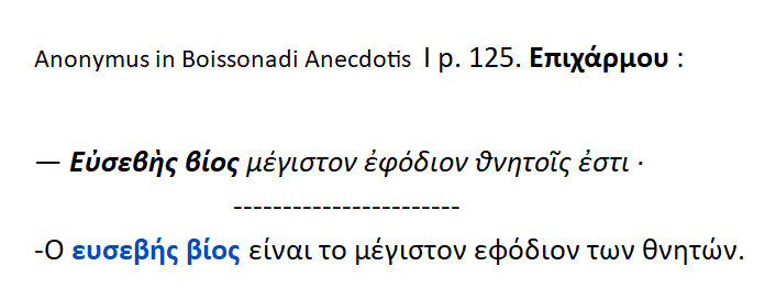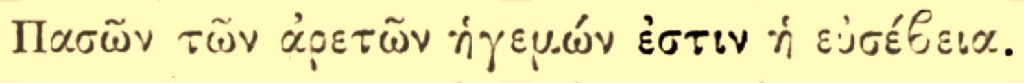 Αξιοπίστου Γνώμαι. Ο ευσεβής βίος είναι το μέγιστον εφόδιον των θνητών.