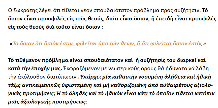 Το ΌΣΙΟΝ ,επειδή είναι ΟΣΙΟΝ , το αγαπούν οι Θεοί ή ,επειδή το αγαπούν οι Θεοί είναι ΟΣΙΟΝ ;