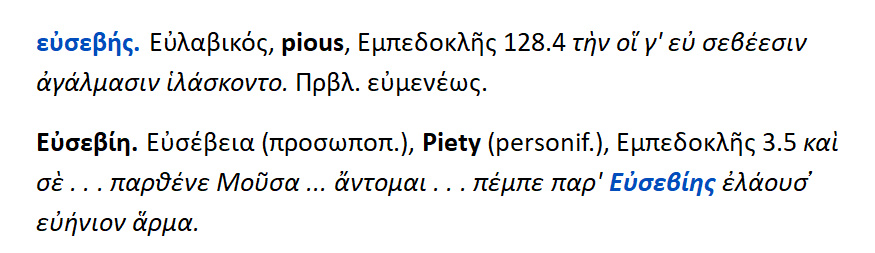 ΕΜΠΕΔΟΚΛΗΣ : Ευσεβίη [ pious ] , ευσεβής [ piety ].