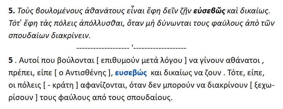 ΔΙΟΓΕΝΟΥΣ ΛΑΕΡΤΙΟΥ – » Βίοι Φιλοσόφων », [ ΣΤ’ ] . ΑΝΤΙΣΘΕΝΗΣ.