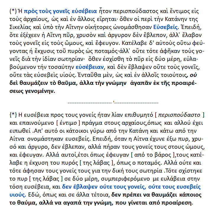 Η απόδοσις των αρχαίων κειμένων δεν είναι φωτογραφική ,συνεπώς βασίζεται, αλλά δεν ταυτίζεται απόλυτα με αυτή των συγγραφέων .