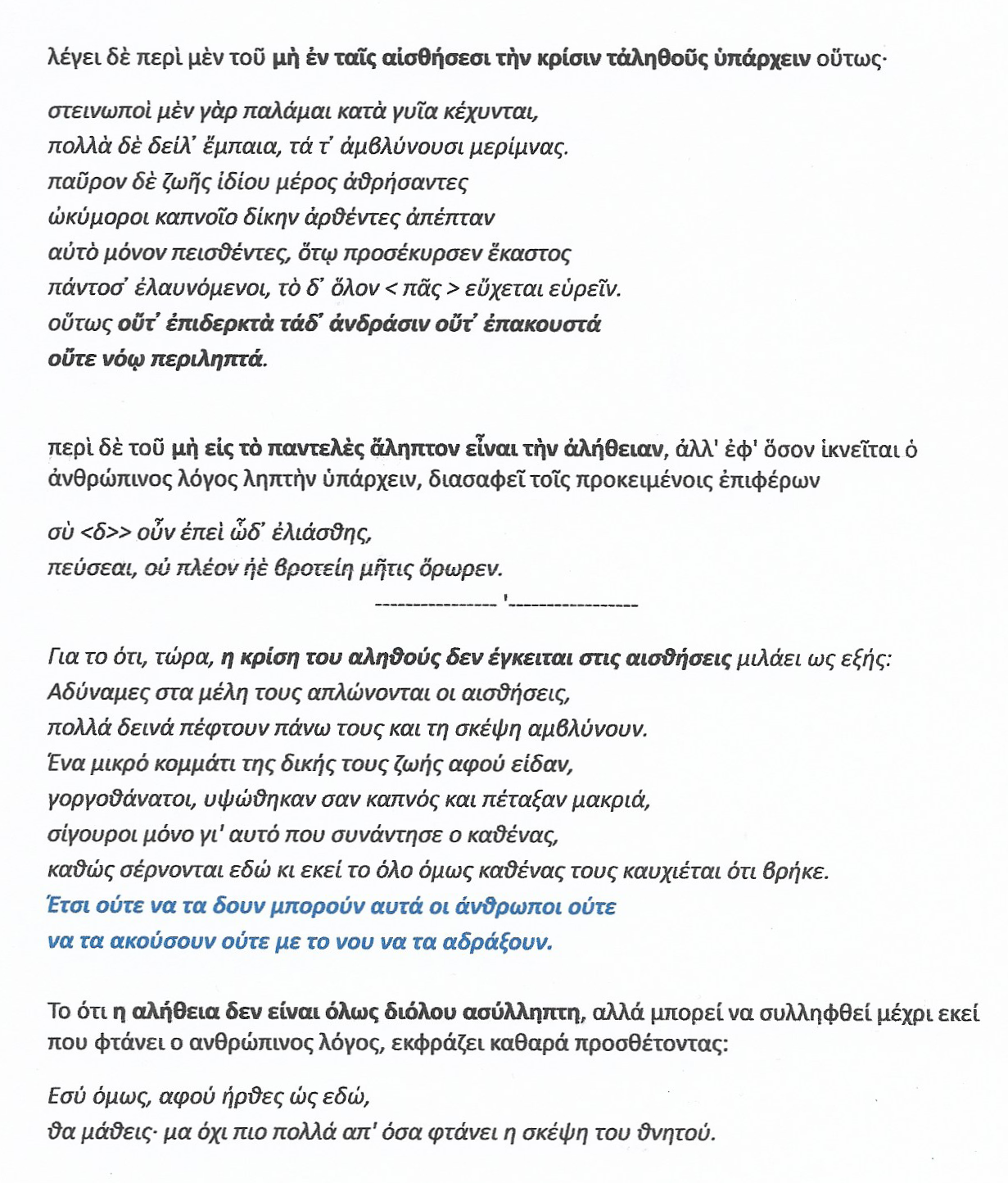 ΣΕΞΤΟΥ ΕΜΠΕΙΡΙΚΟΥ – » Προς Λογικούς », { Α’. 123-24 }. ΕΜΠΕΔΟΚΛΕΟΥΣ -» Περί φύσεως ».