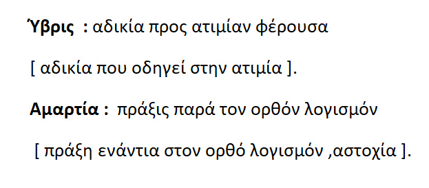 Διαφέρει η ύβρις της αμαρτίας .Στην αμαρτία παραβιάζονται όρια γνωστά και καθορισμένα, ενώ στην ύβριν όρια άγνωστα και μη καθορισμένα.