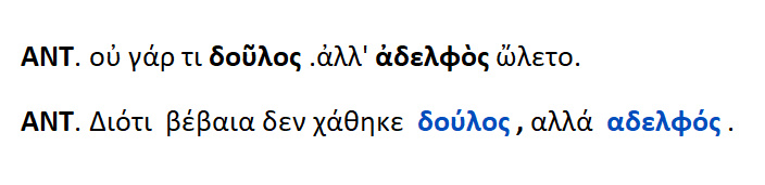 Μελέτες πάνω στο κείμενο της ‘Αντιγόνης ‘ έχουν γίνει πολλές στο πέρασμα των αιώνων .Ένα κλασσικό , απαράμιλλο κείμενο ,που εκφράζει το »υψηλόν» στην τέχνη δεν παύει να θέλγει ,να συγκινεί , να συναρπάζει και στην εποχή μας. Άλλωστε το κλασσικό δεν έχει χρόνο ,αλλά κλάση .Όμως οι μελέτες αυτές έφεραν στο φως εκτός από ενδιαφέρουσες ερμηνείες και κάποιες παρανοήσεις. Βασική αιτία παρανοήσεως ενός κειμένου είναι η γλώσσα. Πολλές φορές οι ανορθόδοξες μεταφράσεις των τραγωδιών από την αρχαία ελληνική σε άλλη γλώσσα οδηγούν σε λάθος συμπεράσμα- τα. Διότι ουδείς μπορεί να κατανοήσει καλλίτερα τα ελληνικά κείμενα από τους Έλληνες .Όπως ουδείς μπορεί να καταλάβει τον Ου. Σαίξπηρ καλλίτερα από τον Βρεττανό ή τον Δάντη [ Αλιγκιέρι ] από τον Ιταλό ή τον Ερ. Ίψεν από τον Νορβηγό ή τον Αν. Τσέχωφ από τον Ρώσο ή τον Τ. Ουίλιαμς από έναν Αμερικανό κ.τ.λ. Βεβαίως πρόβλημα υπάρχει και στις αποδόσεις των αρχαίων ελληνικών κειμένων από την αρχαία ελληνική στην νεοελληνική .Όμως ,ας ληφθεί υπόψιν ,ότι ουδεμία »τελεία » απόδοση [ όχι μετάφραση ] ή ερμηνεία ενός αρχαίου κειμένου μπορεί να αντικαταστήσει το πρωτότυπον ‘ απλώς το προσεγγίζει κατά το δυνατόν στα γλωσσικά »μέτρα» της εποχής της.