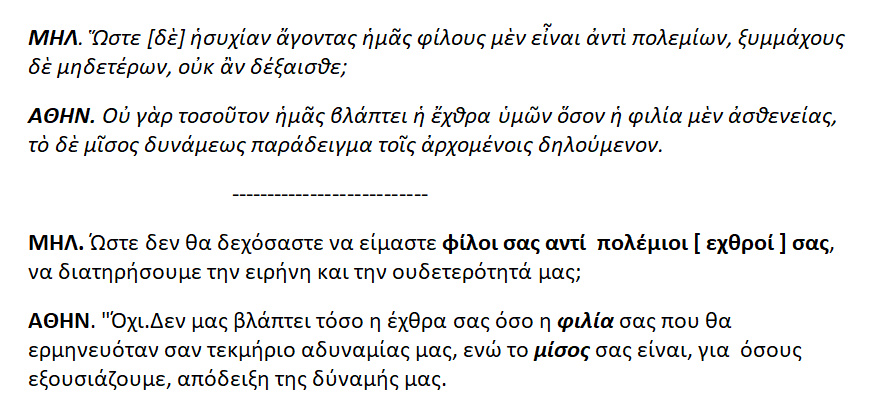 «Ώστε δεν θέλετε να είμαστε φίλοι σας αντί εχθροί σας ; »Όχι ,γιατί δε μας βλάφτει τόσο ή έχθρα σας όσο η φιλία
