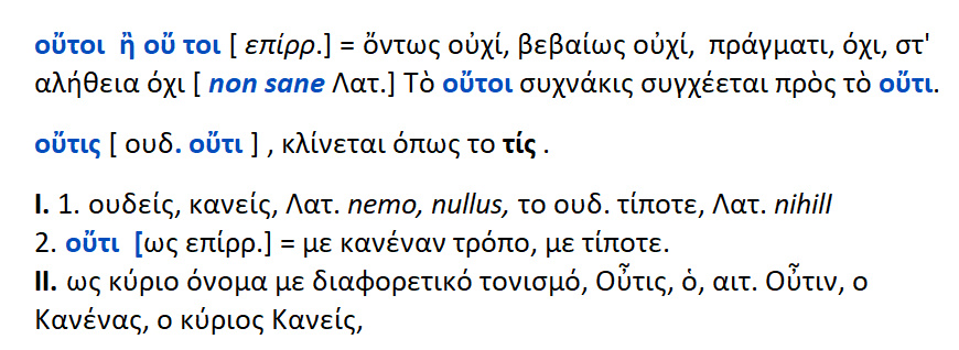 H.LIDDELL & R.SCOTT – » Μέγα Λεξικόν της Ελληνικής γλώσσης » // Ι.ΣΤΑΜΑΤΑΚΟΥ – » Λεξικόν της Αρχαίας Ελληνικής γλώσσης ».