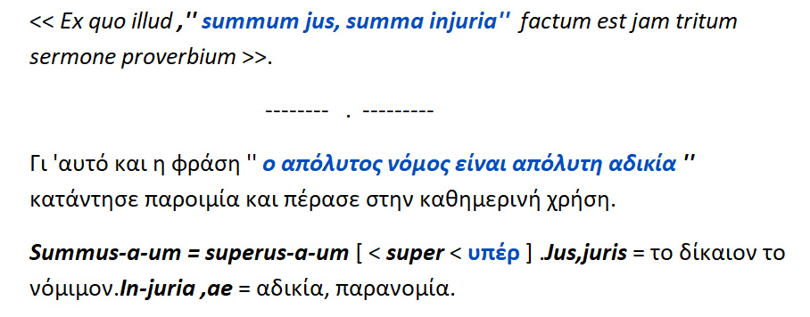 << άκρα δικαιοσύνη , άκρα αδικία >> ή <<η έσχατη δικαιοσύνη, [ οδηγεί στην ] έσχατη αδικία >>.