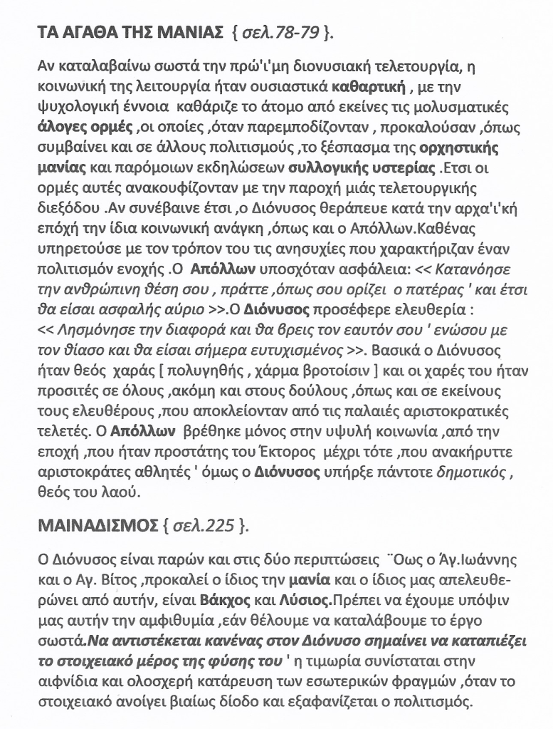 ΙΙΙ. Τα αγαθά της μανίας . Παράρτημα Ι. Μαιναδισμός.
