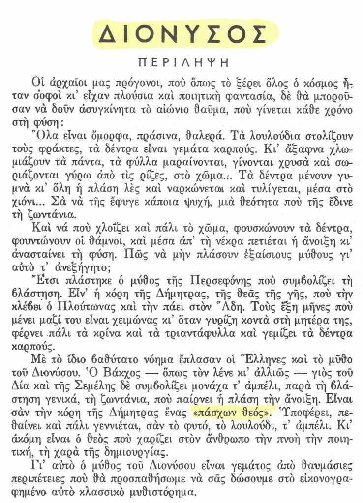 ΕΔ. ΣΥΡΕ – » Η Γένεσις της Τραγωδίας και η επίδρασις των Ελευσινίων Μυστηρίων », { σελ.126-28 }.