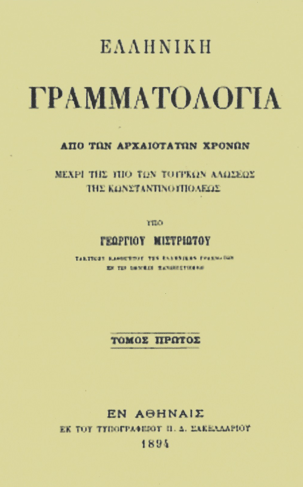 Γ . ΜΙΣΤΡΙΩΤΗ – » Ελληνική Γραμματολογία » . Ι .Περί γενέσεως της τραγωδίας [ σελ.347 ].