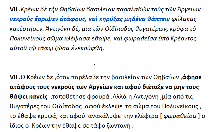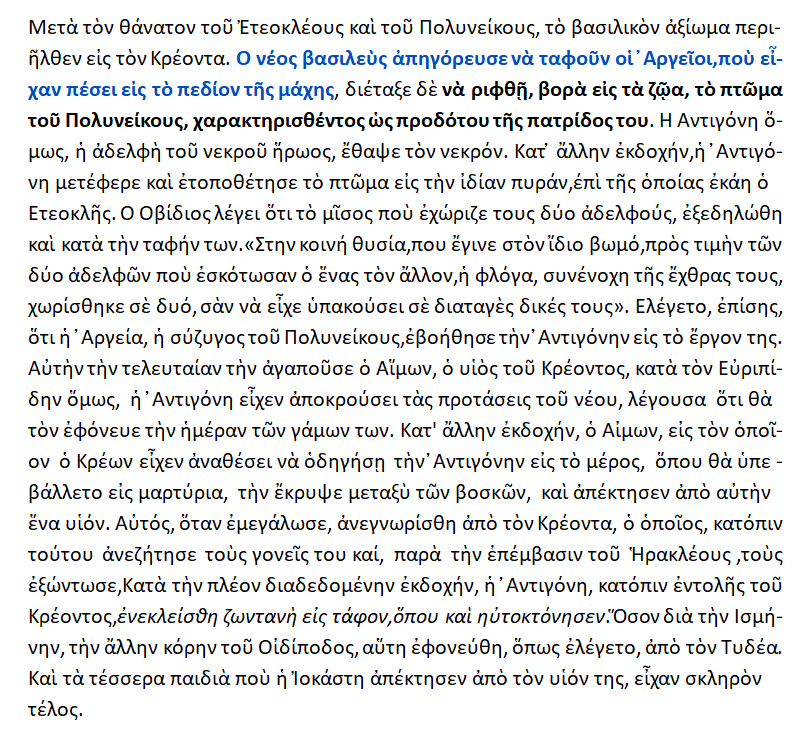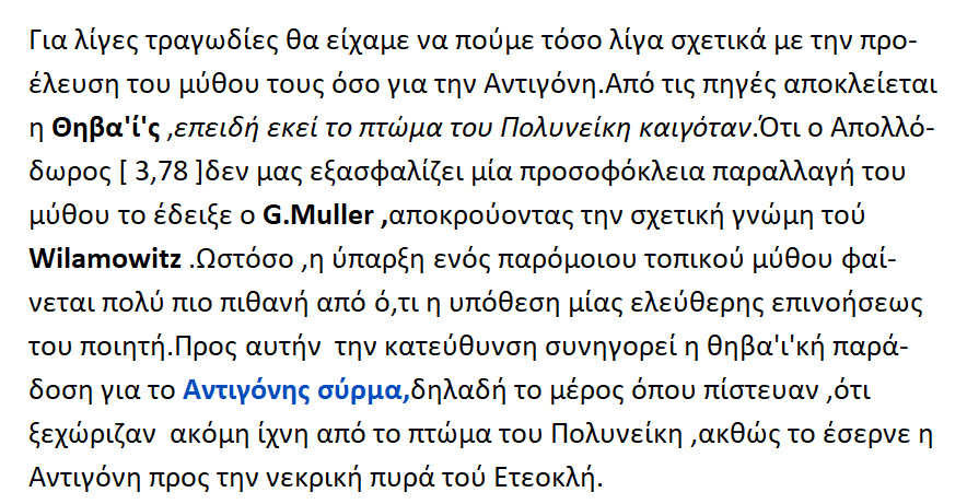 Ι.ΚΑΚΡΙΔΗ – » Ελληνική Μυθολογία [ IV. B’.]» . Αντιγόνη , [ σελ. 225 ].