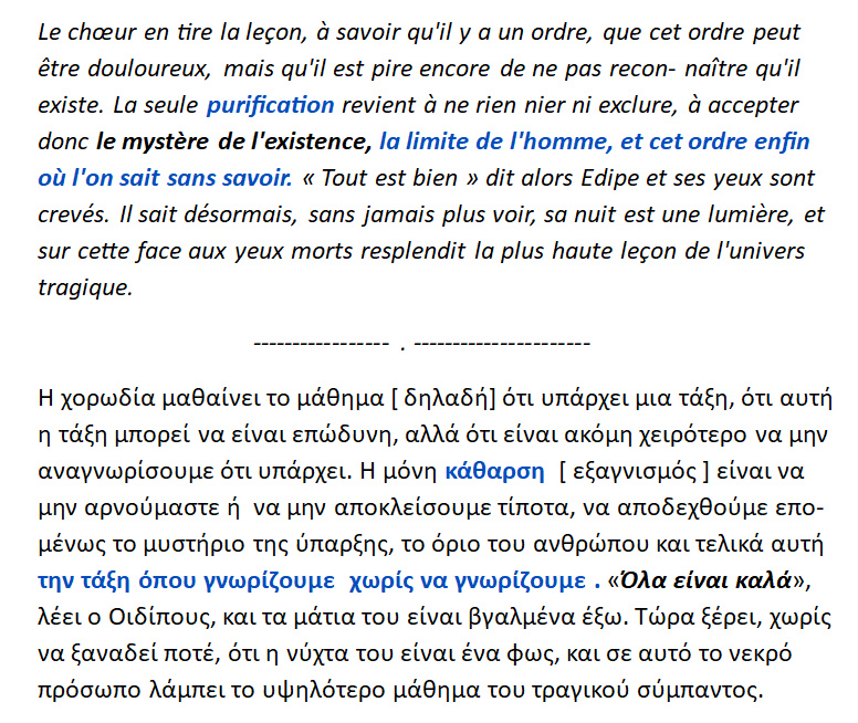 Α.ΚΑΜΥ – » Théatre, Récits, Nouvelles: L’ avenir de la tragédie » { σελ. 1706 } // Α. ΚΑΜΥ – » Διαλέξεις και ομιλίες [ 1937-1958 ]. Το μέλλον της τραγωδίας Διάλεξη στο Γαλλικό Ινστιτούτο Αθηνών [ 1955 ] , { σελ.207-222 ].