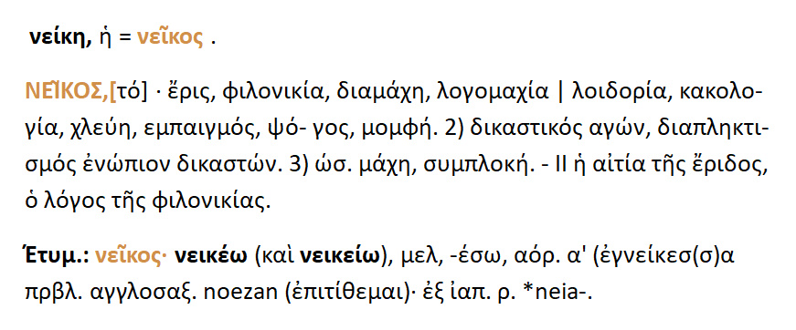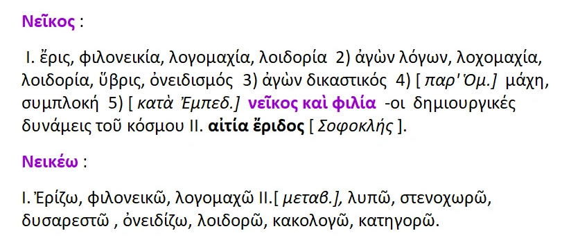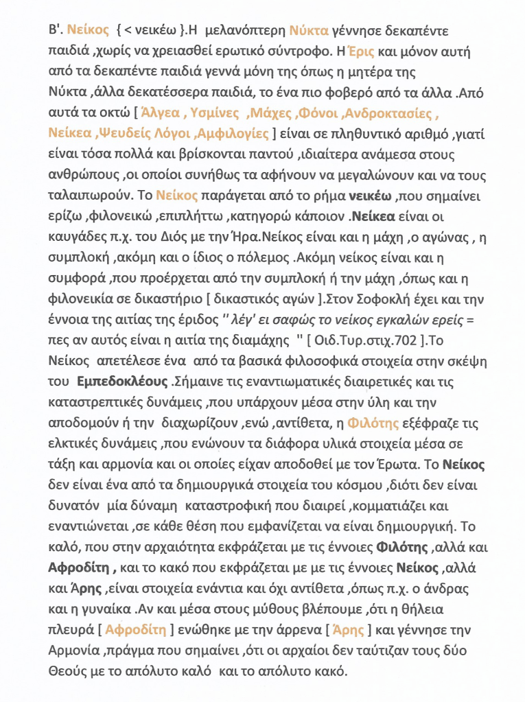 ΑΠ.ΓΟΝΙΔΕΛΗ – » Η Γένεση κατά τους αρχαίους Έλληνες » { ΣΤ’.] Τα τέκνα τη Έριδος .Νείκεα [ σελ.117 ].