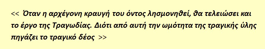 Από την ωμότητα της »τραγικής» ύλης πηγάζει το τραγικόν δέος [ σ. σ .και ο δεινός ].