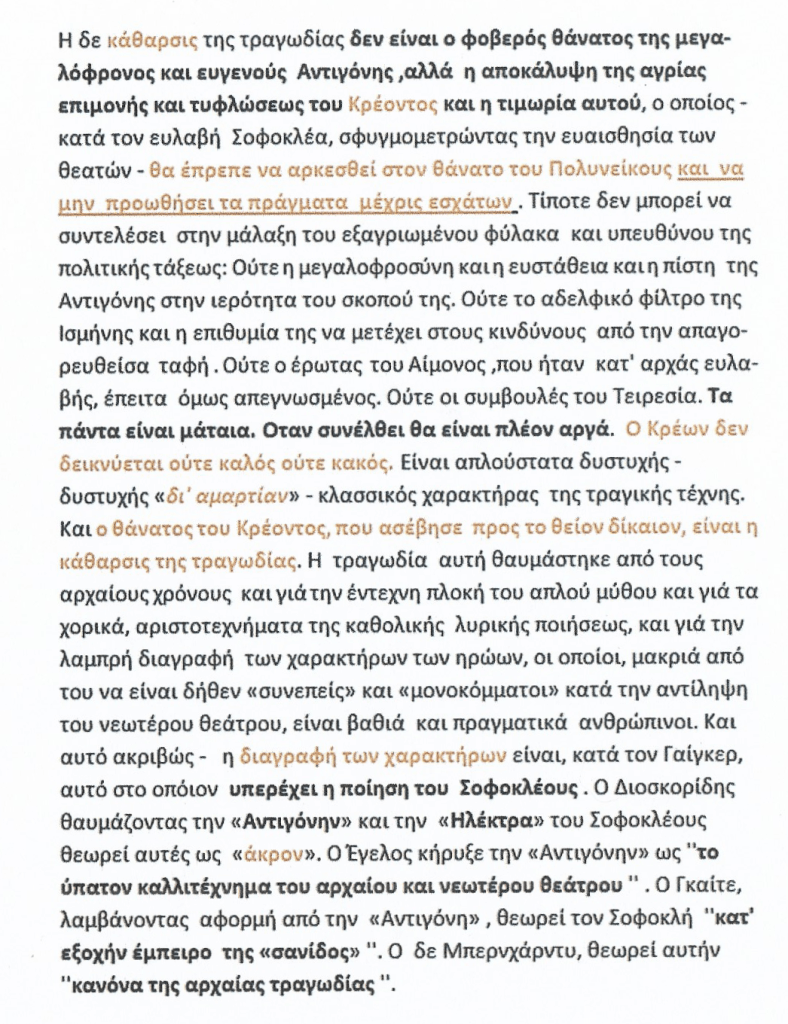 Ε.Π.ΦΩΤΙΑΔΗ – » Αντιγόνη Σοφοκλέους ». Κάθαρσις.
