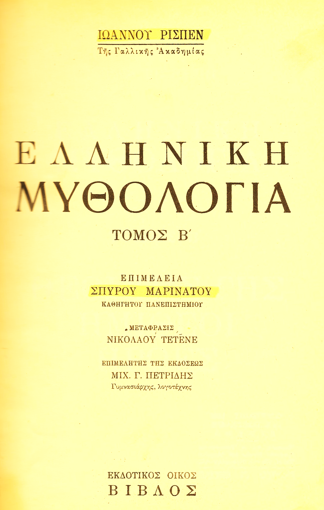 ΙΩ.ΡΙΣΠΕΝ – » Ελληνική Μυθολογία »,{ σε 491-2 }.
