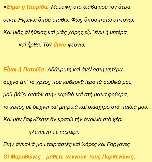 ΥΜΝΟΣ ΤΩΝ ΕΛΛΗΝΩΝ. »Οι Μαραθώνες—μάθετε γεννούν τους Παρθενώνες ».