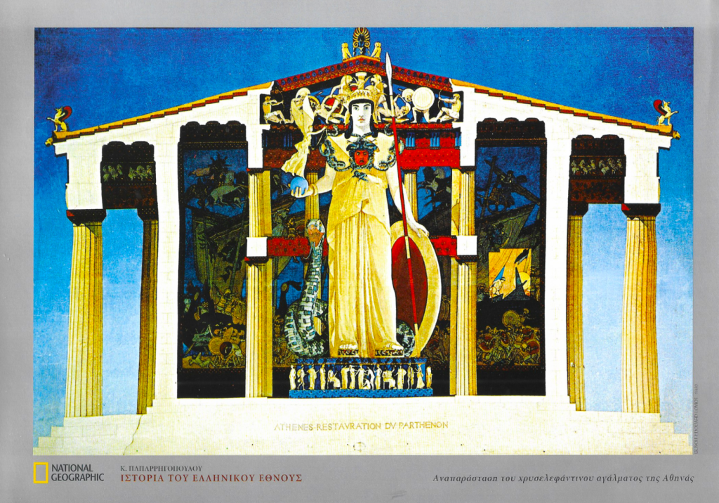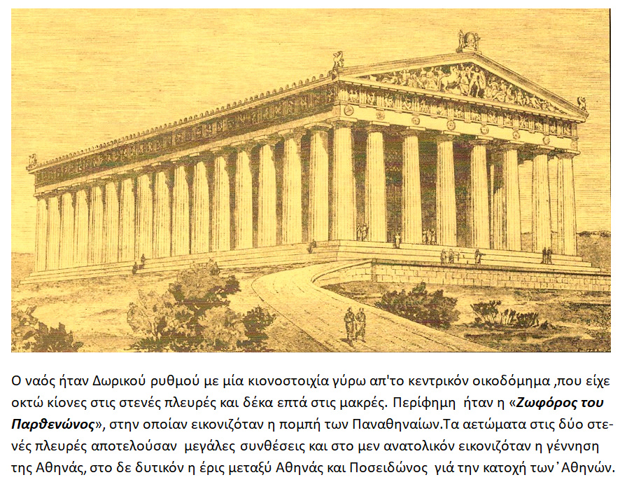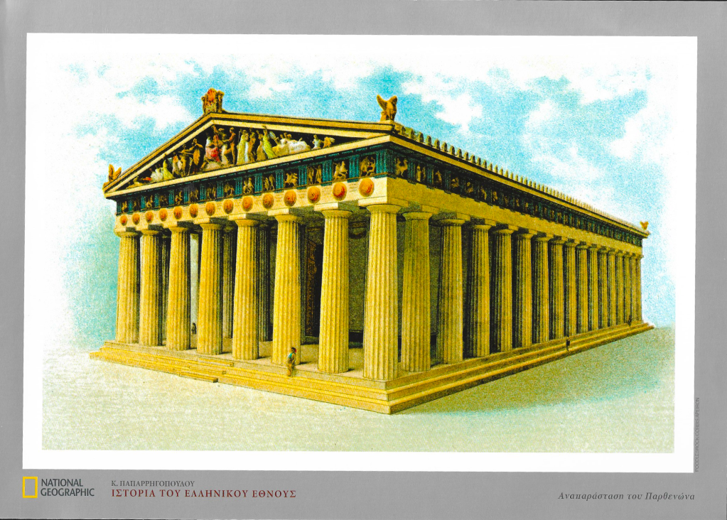 Αναπαράσταση του Παρθενώνος του πρώτου από τα έργα της εποχής του Περικλέους στην Ακρόπολη (447-438 π.Χ.).