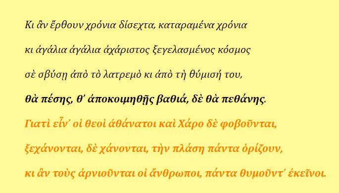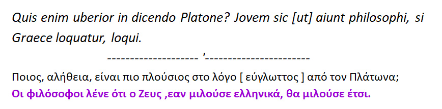 »Ει Θεοί διαλέγονται την των Ελλήνων γλώττη χρώνται ‘ : Εάν οι Θεοί συζητούν, χρησιμοποιούν την γλώσσα των Ελλήνων.