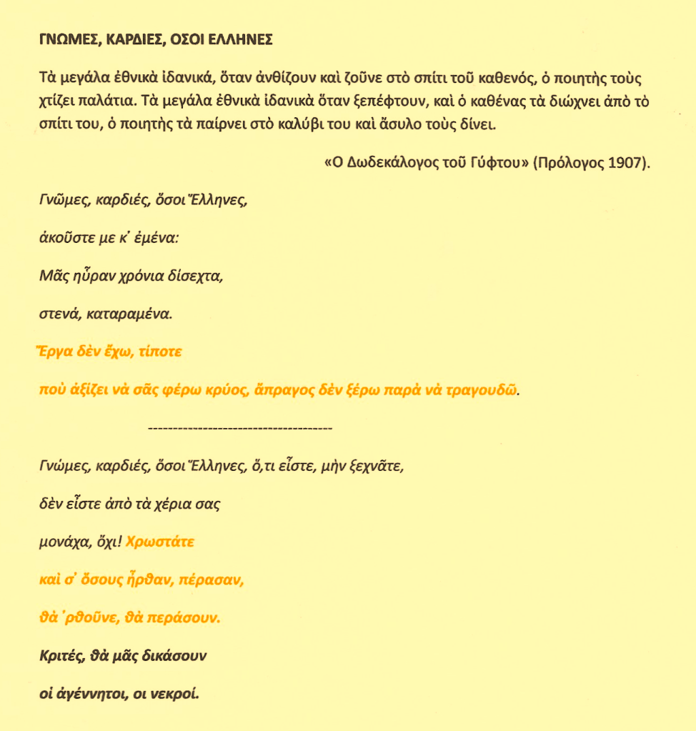 Κ..ΠΑΛΑΜΑ – » Δειλοί και σκληροί στίχοι ». Λυρικοί Λόγοι. «Γνώμες, καρδιές, όσοι Έλληνες ».