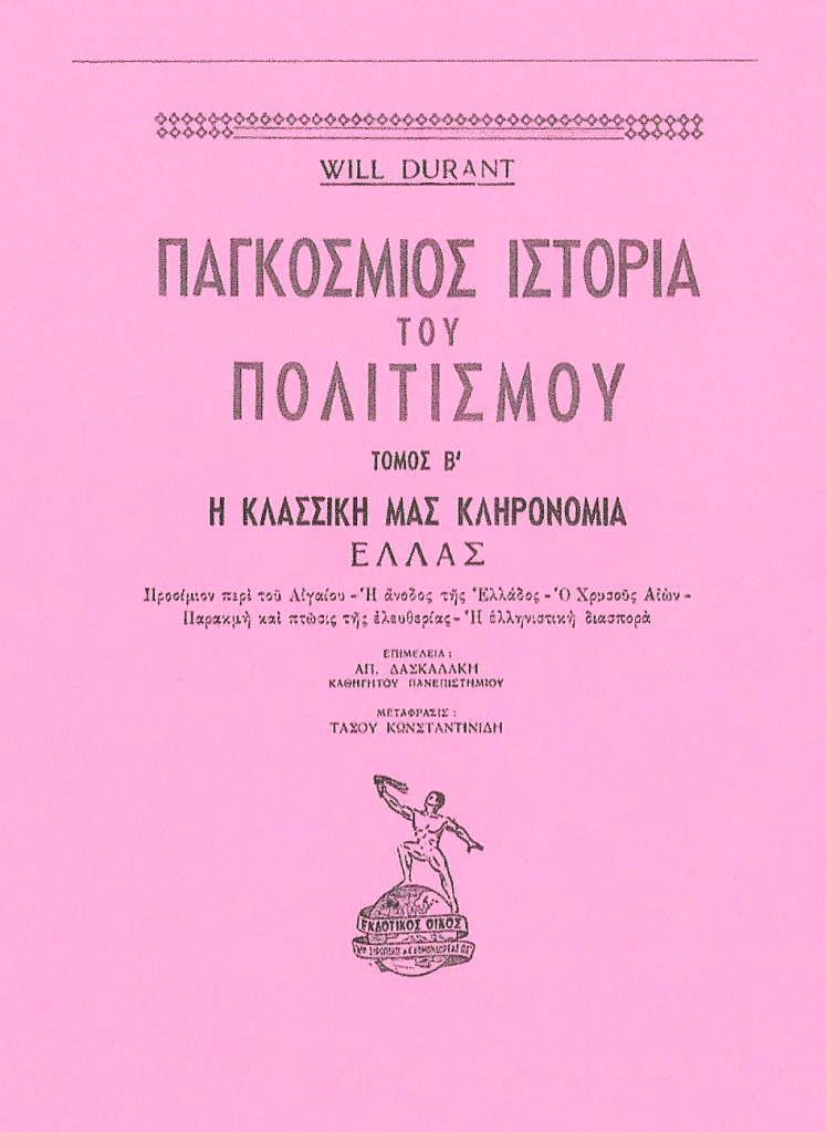 WILL DURANT – ‘‘ Παγκόσμιος  Ιστορία του Πολιτισμού », { πρόλογος : σελ.5-6}.