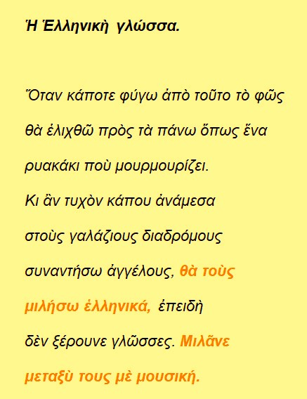 Στους αγγέλους θα μιλήσω ελληνικά ,επειδή μιλάνε μεταξύ τους με μουσική.