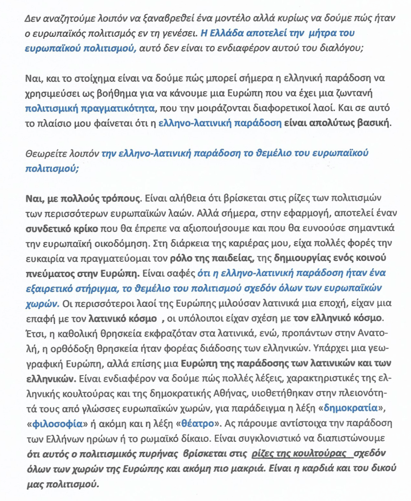 Η ελληνο-λατινική παράδοση είναι το θεμέλιο του ευρωπαϊκού πολιτισμού.