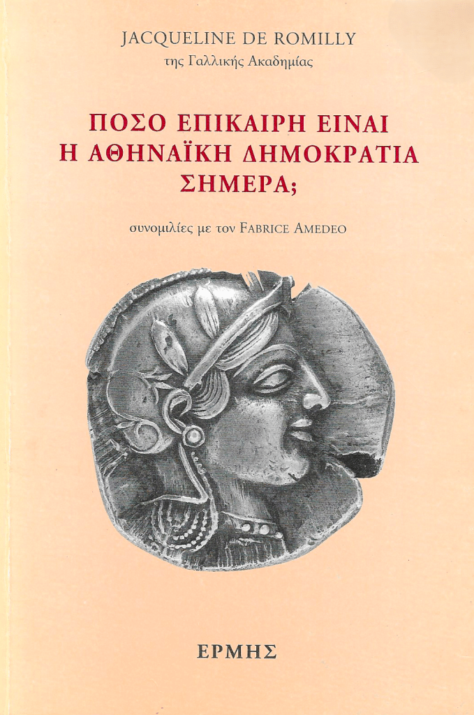 JACQUELINE DE ROMILLY – » Πόσο επίκαιρη είναι η Αθηναϊκή Δημοκρατία σήμερα ; », { σελ.155-56 }.
