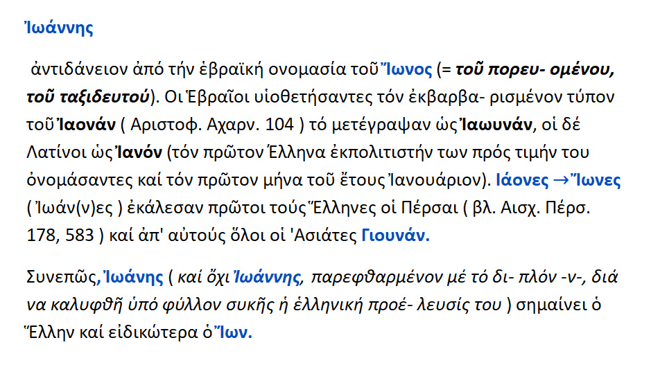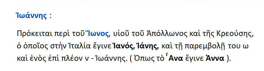 Ο Ιωάννης είναι ο ΙΩΝ ,ο ΙΑΝΟΣ ,ο ΙΑΝΗΣ { με την προσθήκη δευτέρου [ν] }.