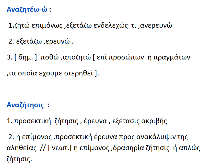 AKΑΔ. ΑΘΗΜΩΝ – » Χρηστικό λεξικό της Νεοελληνικής γλώσσας » // ΑΡΙΣΤ. ΠΑΝ. ΘΕΣΣΑΛΟΝΙΚΗΣ – » Λεξικό της Κοινής Νεοελληνικής ».