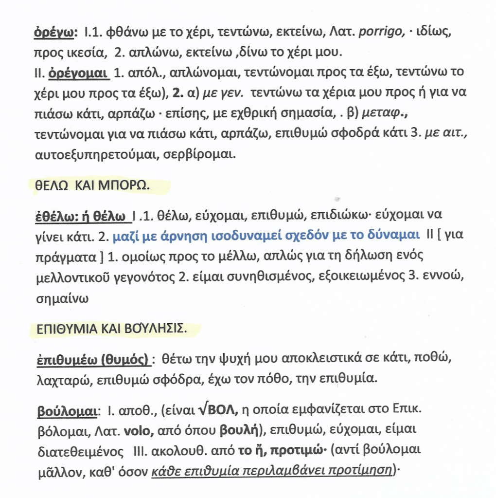 Ορέγω ,ορέγομαι. Θέλω -μπορώ .Επιθυμία- βούλησις.