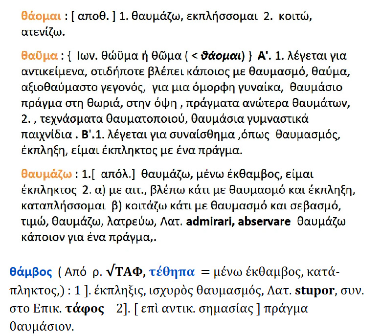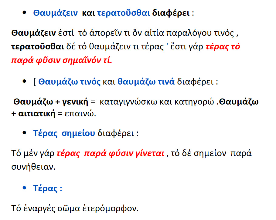 Θαυμάζειν – τερατούσθαι . Τέρας -σημείον.