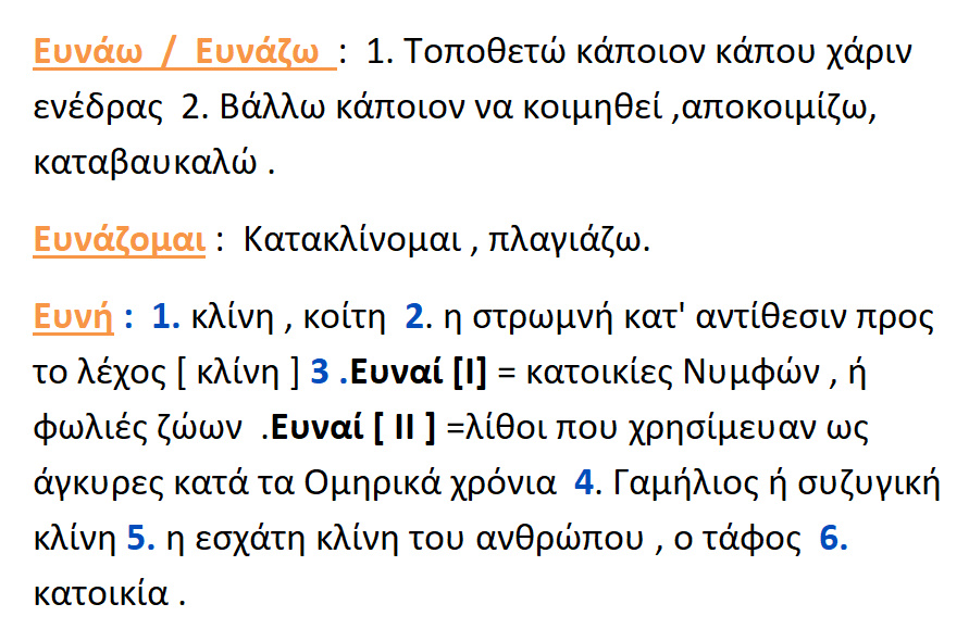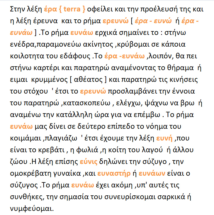 Έρα [ terra ] =γη. Ευνάω / ευνάζω ,Ευνάζομαι , Ευνή.
