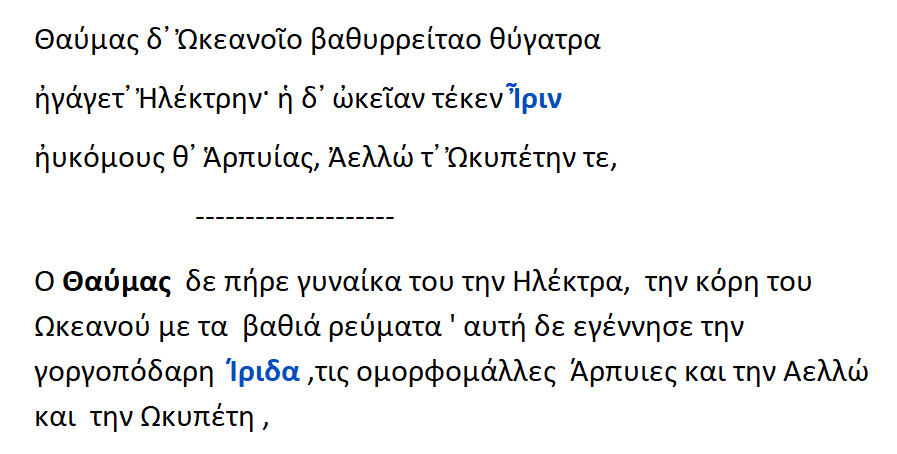 ΑΘ. ΣΤΑΓΕΙΡΙΤΟΥ – » Ωγυγία ή Αρχαιολογία ». { σελ.224 }.Κεφ. ΚΑ’. Περί της Ίριδος και Άρκης.