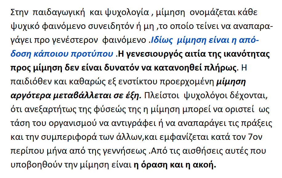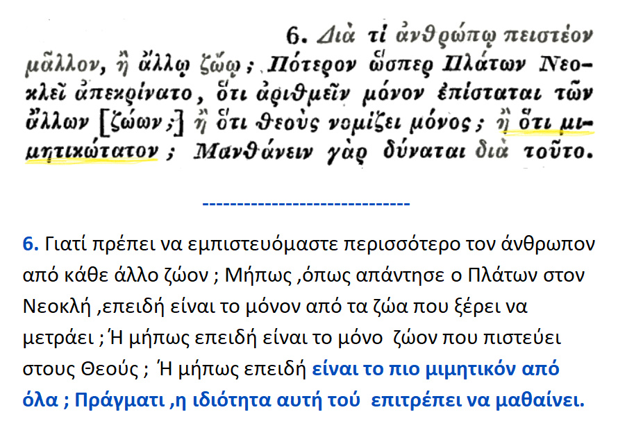 Ο άνθρωπος είναι το πιο μιμητικόν από όλα τα ζώα. Η ιδιότητα αυτή τού επιτρέπει να μαθαίνει