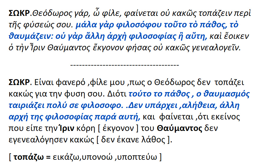 ΠΛΑΤΩΝΟΣ – » Θεαίτητος », { 155 e }.