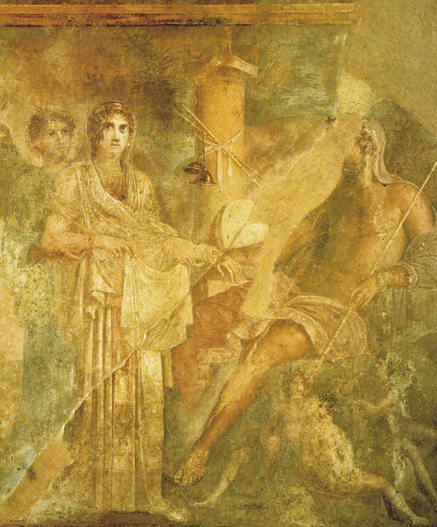Πομπηία : Ίρις ,προπομπός σε γαμήλιες τελετές , Ζευς και Ιδαίοι Δάκτυλοι [;]. Τοιχογραφία από το »Σπίτι του τραγικού ποιητή » { ~75 π.Χ. } .Nεάπολη , Museo Nazionale Archaiologico .