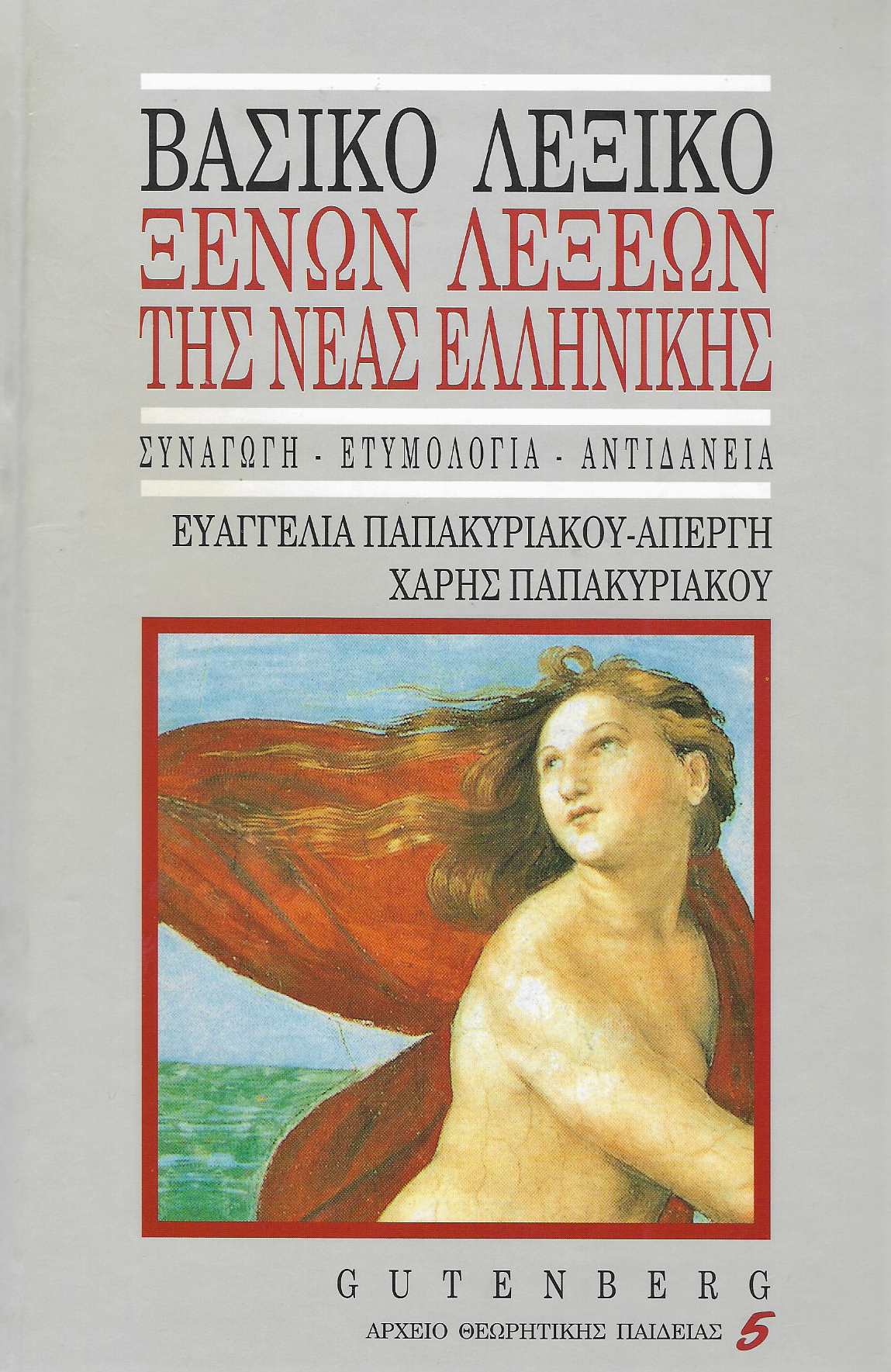 EY.ΠΑΠΑΚΥΡΙΑΖΗ – ΑΠΕΡΓΗ , ΧΑΡ.ΠΑΠΑΚΥΡΙΑΚΟΥ – » Βασικό λεξικό ξένων λέξεων της Νέας Ελληνικής».