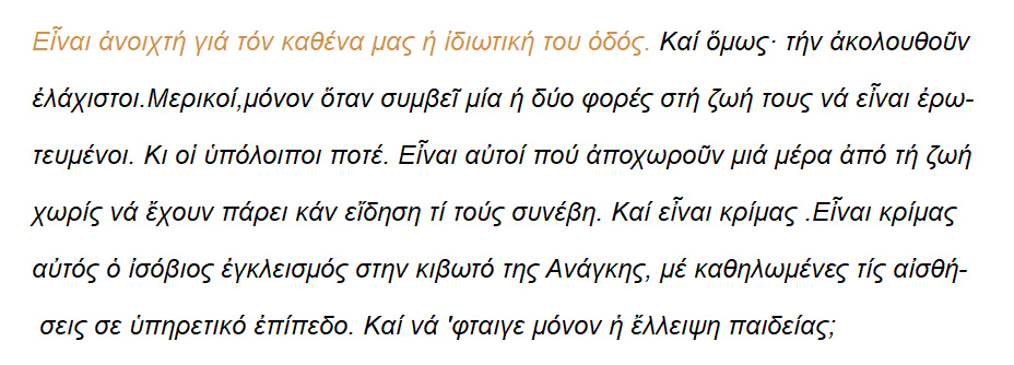 H ΙΔΙΩΤΙΚΗ ΟΔΟΣ κόβει μέσ’ απ’ τον χρόνο.
