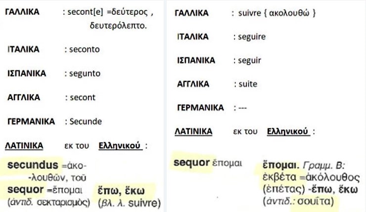 Έπω,έκω > sequor { < έπομαι } > secundus { = ακολουθών }.