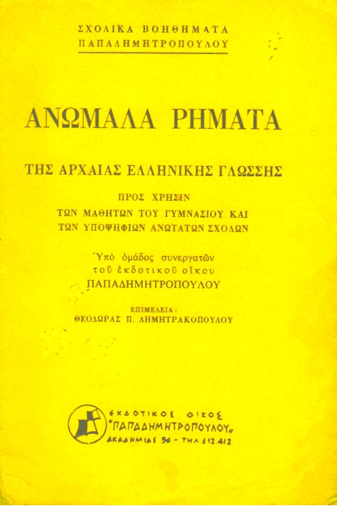 ΠΑΠΑΔΗΜΗΤΡΟΠΟΥΛΟΥ – » Ανώμαλα Ρήματα της Αρχαίας Ελληνικής γλώσσης ».