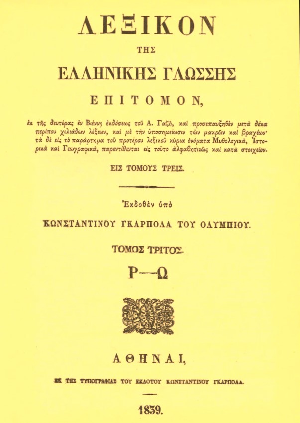 ΑΝΘ. ΓΑΖΗ – » Επίτομον λεξικόν της Ελληνικής γλώσσης ».
