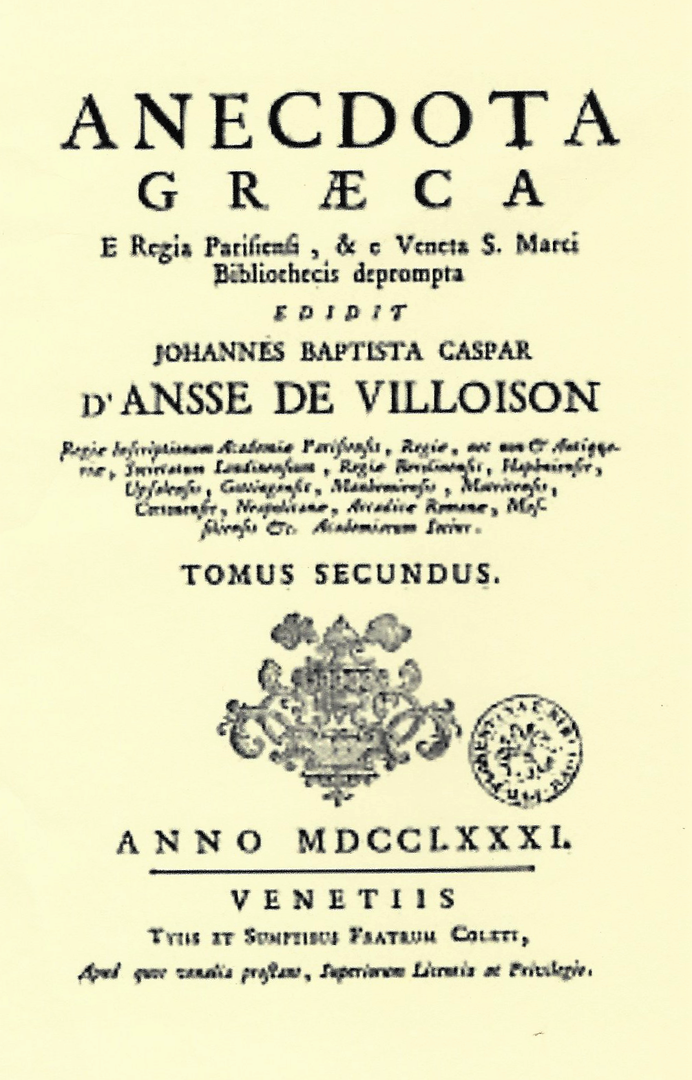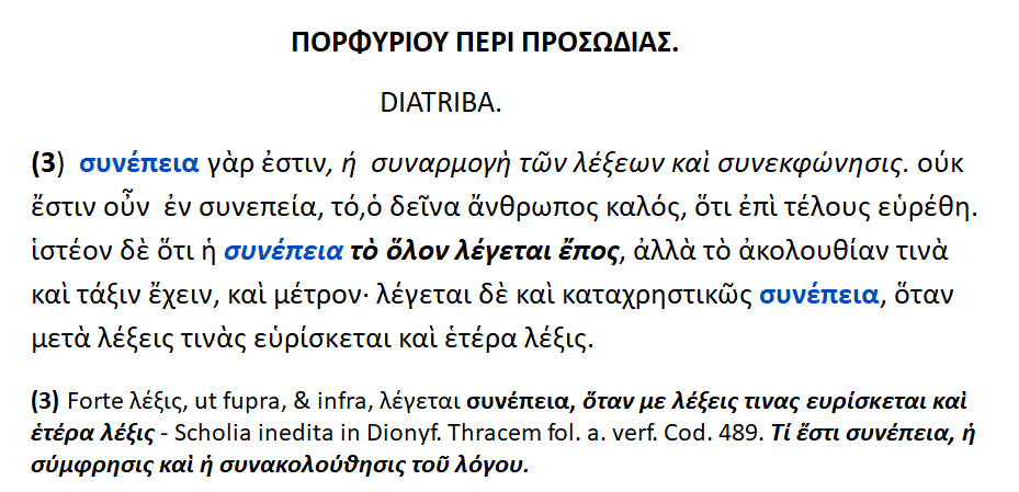 Α. VILLOISON – » Anecdota Graeca » , [ Πορφυρίου – » περί προσωδίας », τομ.2 ,σελ.112 ].