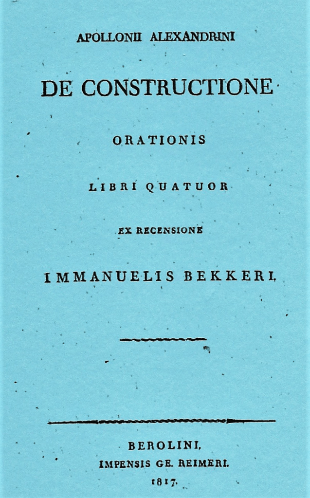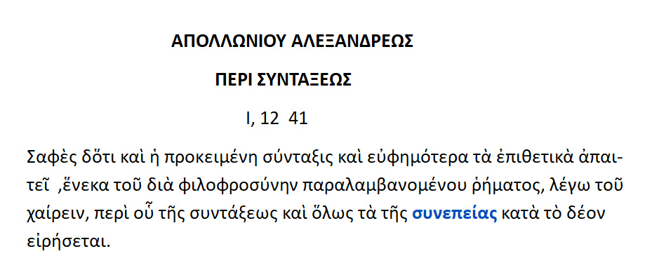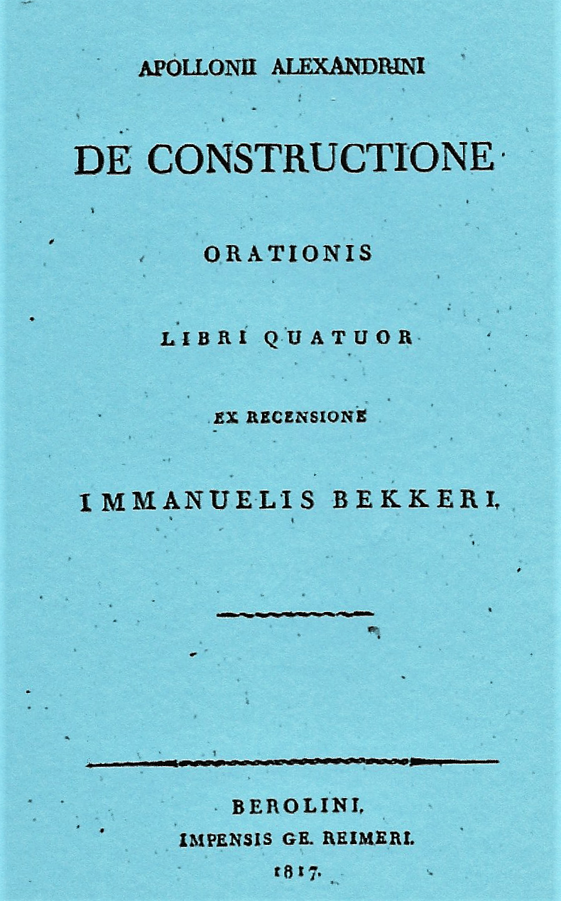 ΑΠΟΛΛΩΝΙΟΥ ΑΛΕΞΑΝΔΡΕΩΣ { Δύσκολος } – » Περί συντάξεως », { Α’ -1,12 }.