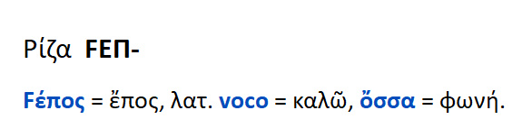 [F]έπος =έπος . Λατ. Voco= καλώ [Vox-vocis =φωνή ].Όσσα =φωνή.