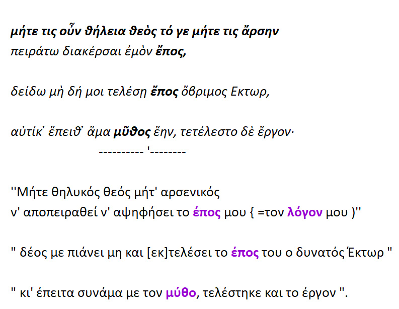 Έπος = λόγος . Έπος = υπόσχεση . Μύθος – Έργον.