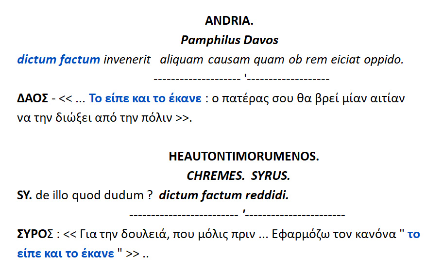 ΤΕΡΕΝΤΙΟΥ – » Ανδρία { στ.381-382 } – Αυτοτιμωρούμενος { στ.760 }».