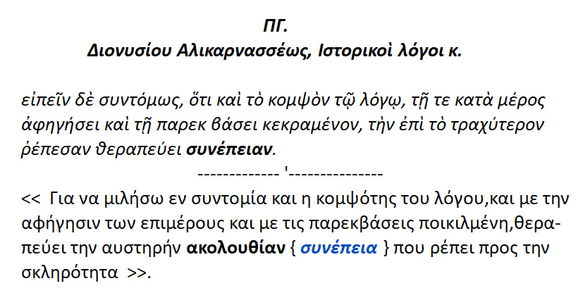 << Τι έστιν συνέπεια ; Η σύμφρασις και συνακολούθησις του λόγου >>.
